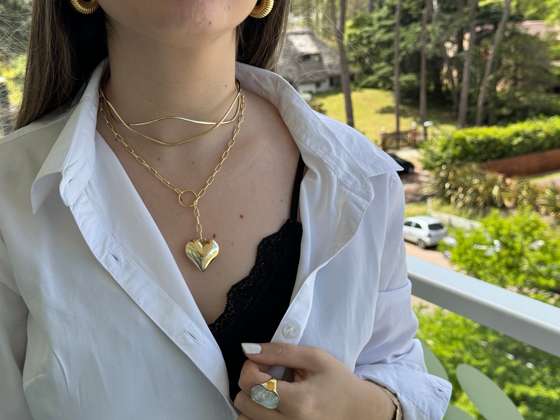 Gargantilla metálica, enchapada en oro